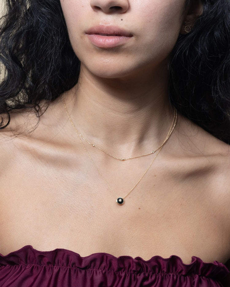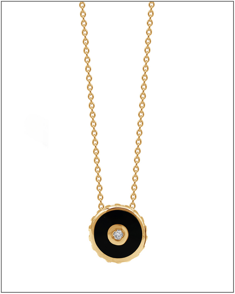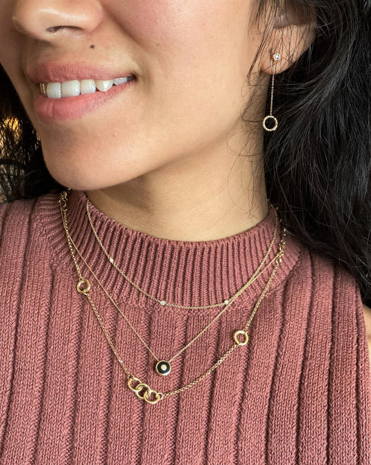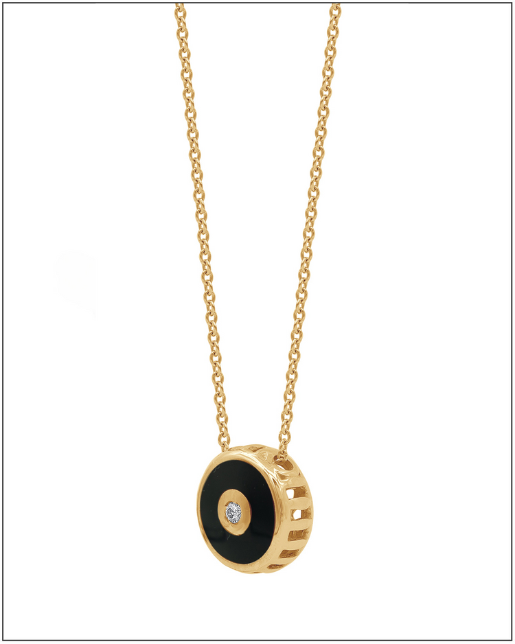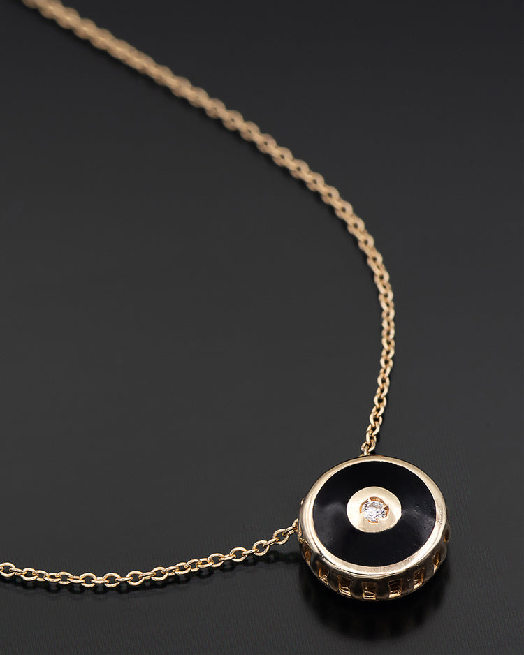 Black enamel and diamond disc chain – 14k Solid Gold