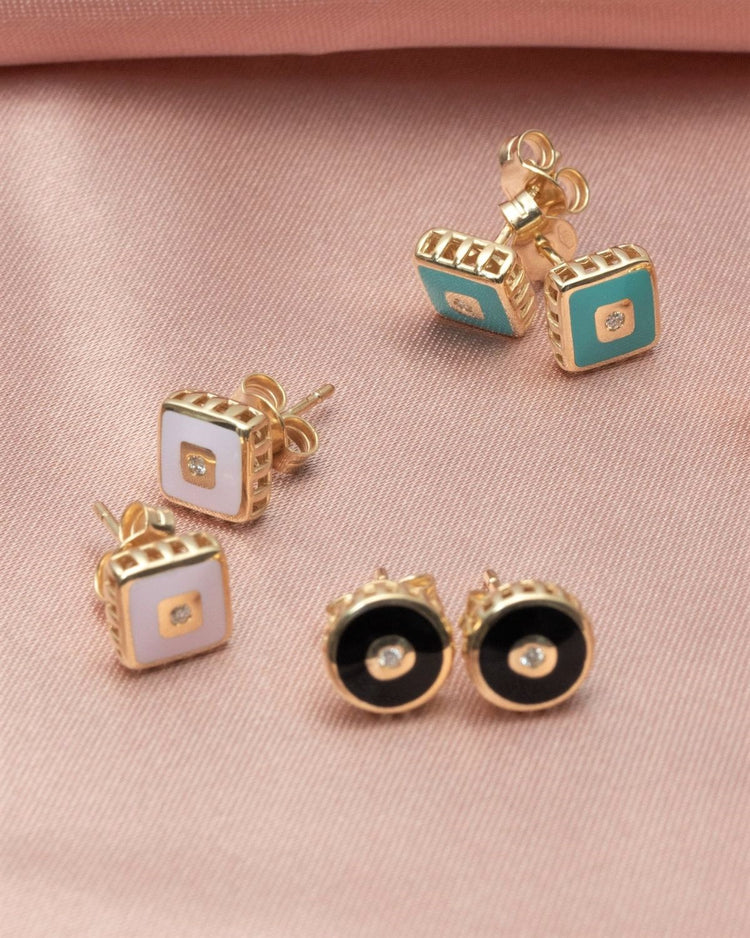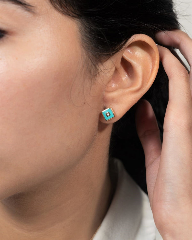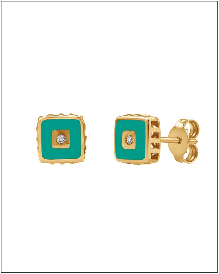 Green enamel and diamond cube studs – 14k Solid Gold