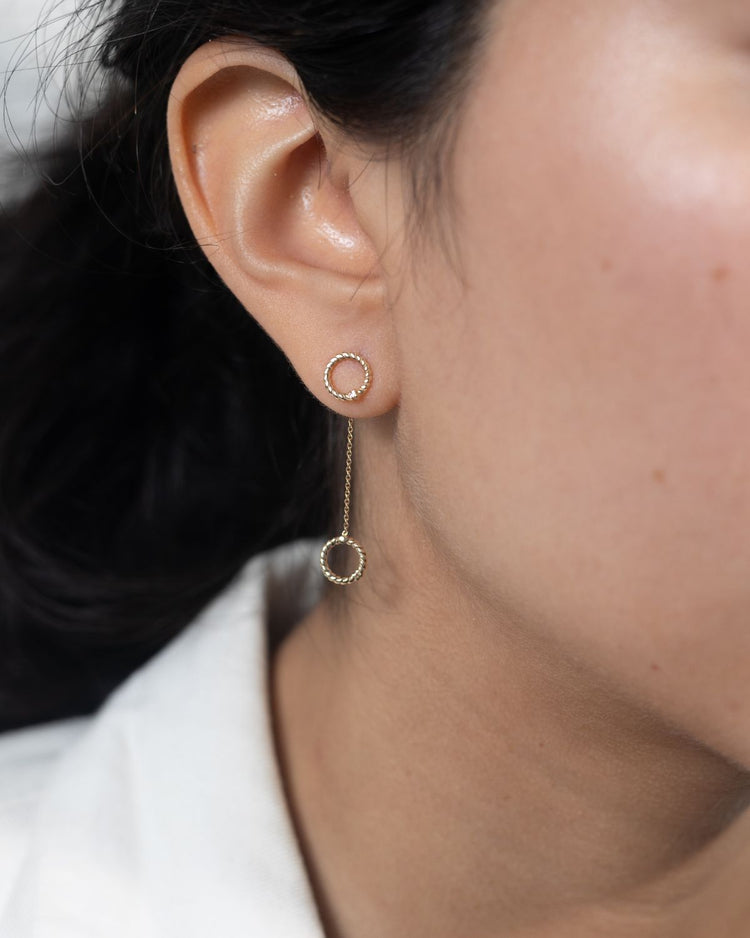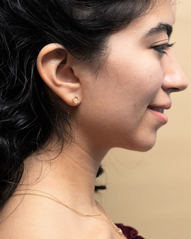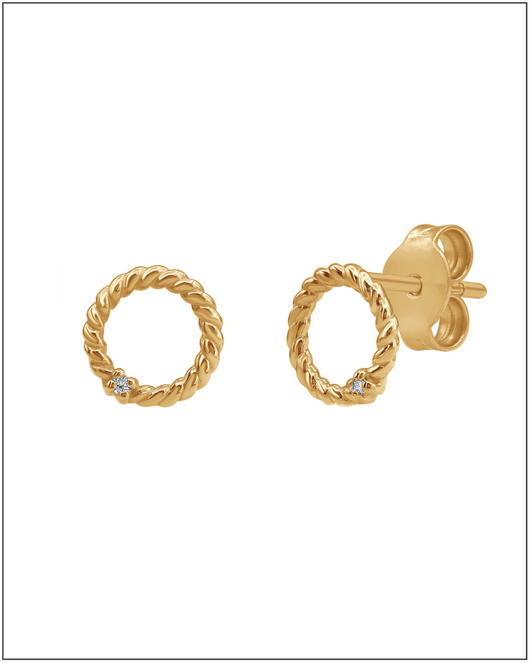 Our classic twisted halo diamond earrings will surely become a staple in your collection. Wear it by itself or stack it with other studs. Glam up your look by pairing the studs with different charms from our collection.